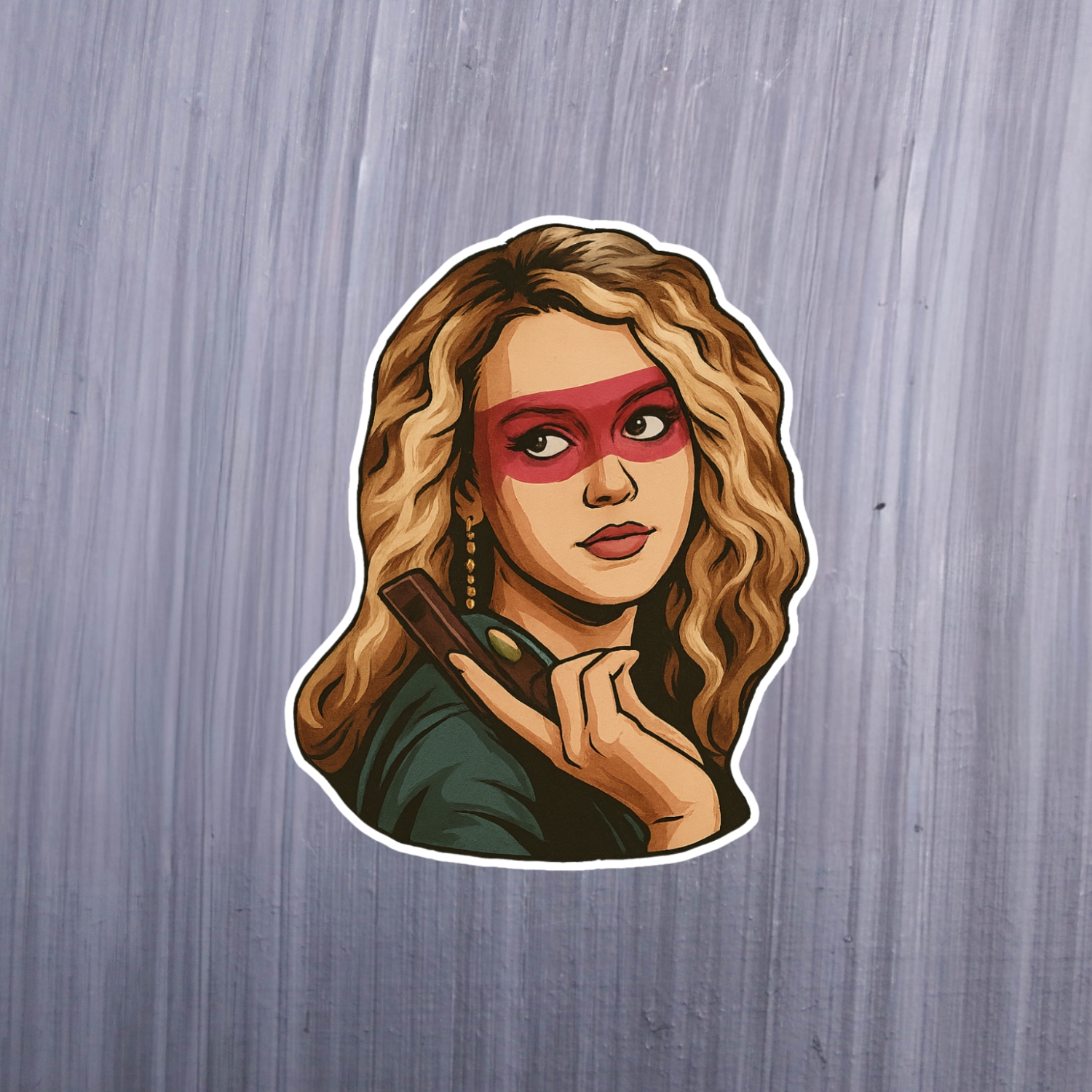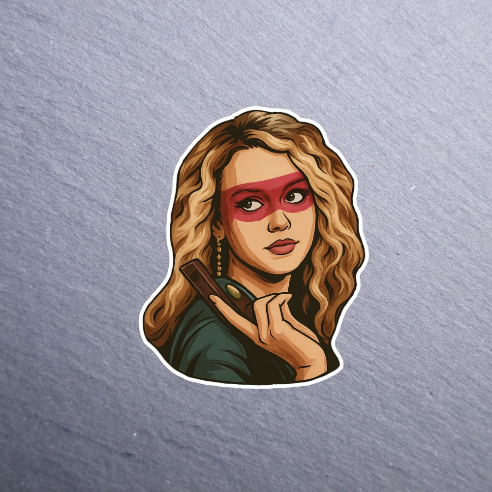 80’s Killer Chick Sticker. These stickers are made with printable vinyl with a vinyl top coat that is scratch-resistant and water resistant. Put one on your phone case, laptop, iPad, hard cooler; the possibilities are endless.