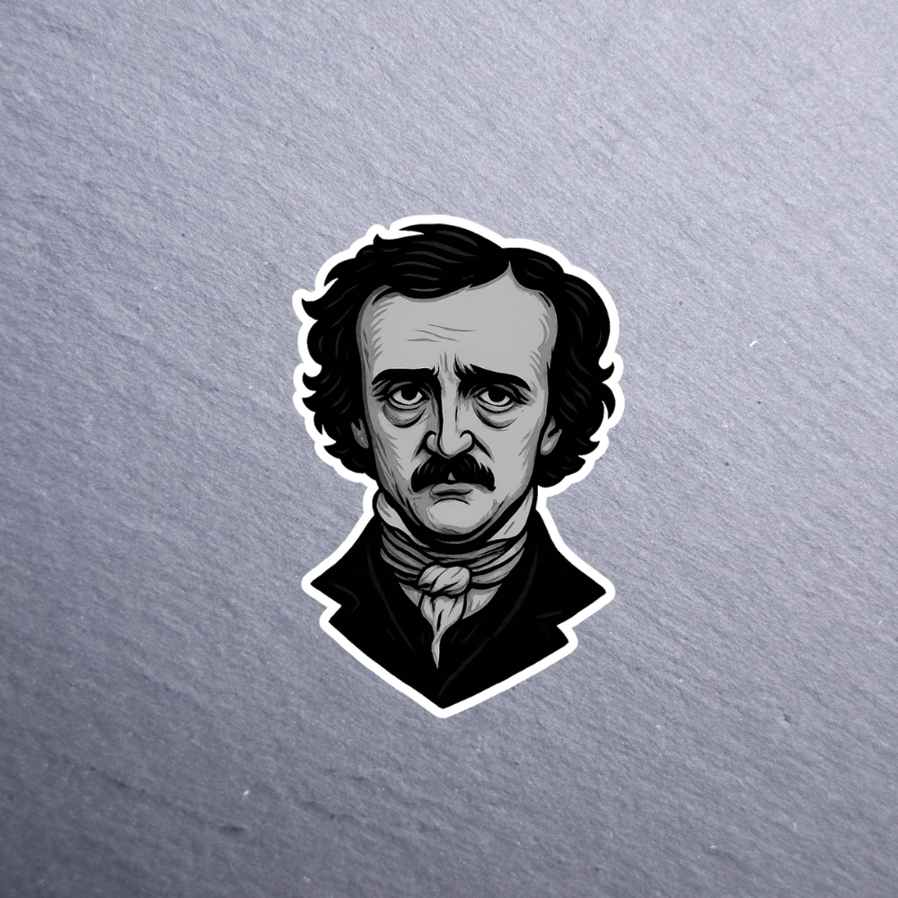 Edgar Allan Poe Sticker. These stickers are made with printable vinyl with a vinyl top coat that is scratch-resistant and water resistant. Put one on your phone case, laptop, iPad, hard cooler; the possibilities are endless.
