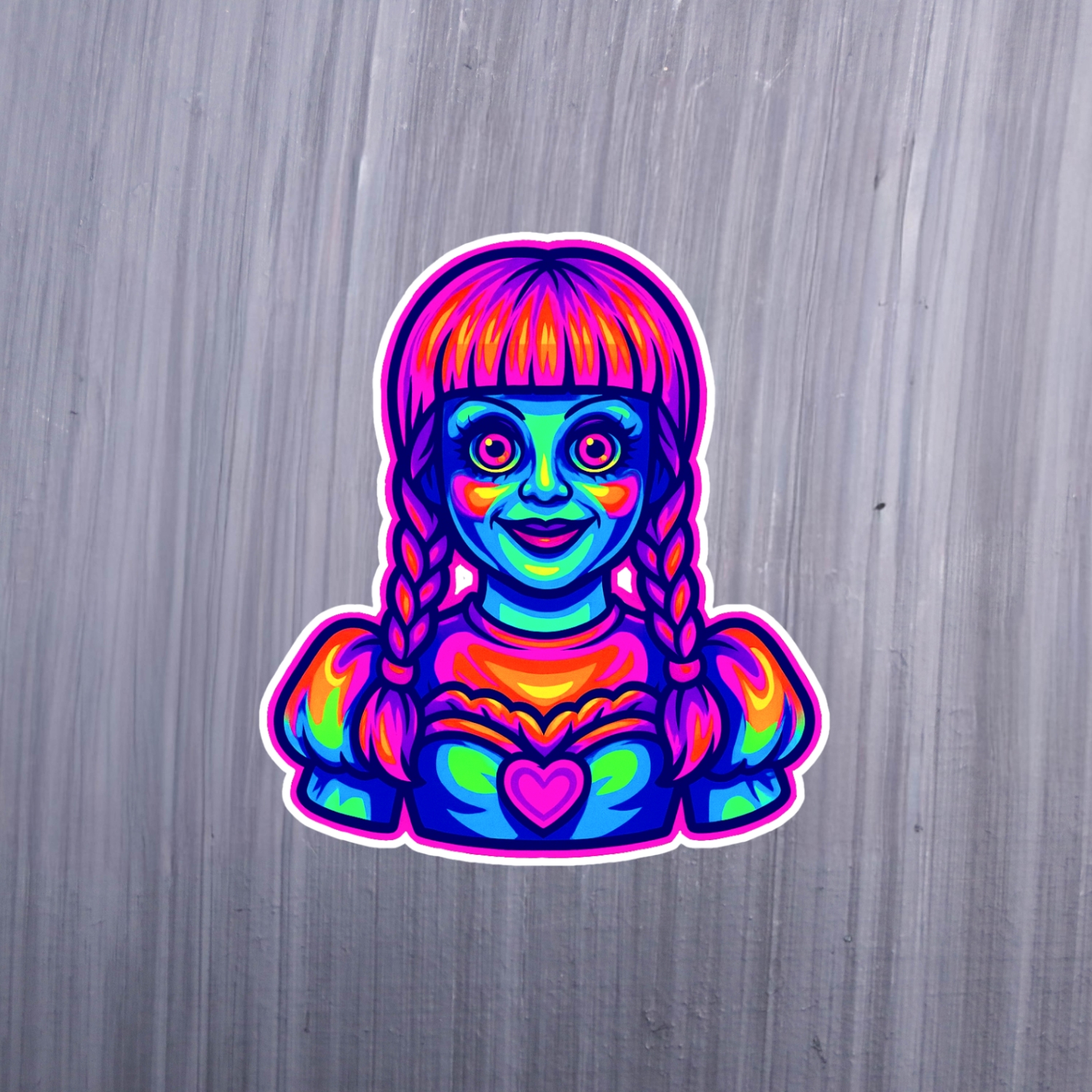 Neon Doll Sticker. These stickers are made with printable vinyl with a vinyl top coat that is scratch-resistant and water resistant. Put one on your phone case, laptop, iPad, hard cooler; the possibilities are endless.