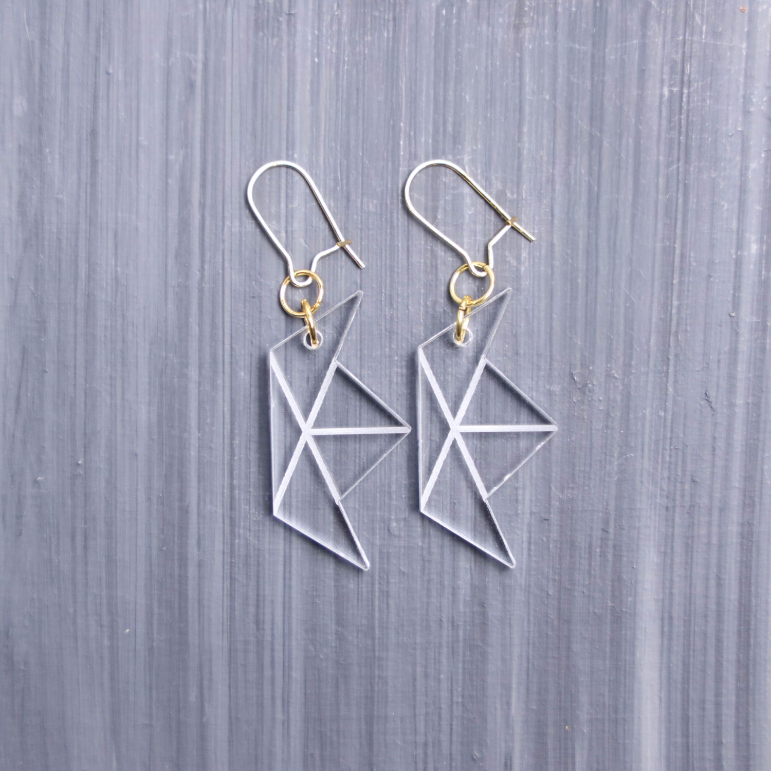 Paper Boat Clear Earrings. These earrings are made with clear acrylic. Comes with gold hooks that is nickel free.