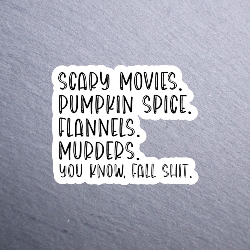Scary Movies Pumpkin Spice Sticker. These stickers are made with printable vinyl with a vinyl top coat that is scratch-resistant and water resistant. Put one on your phone case, laptop, iPad, hard cooler; the possibilities are endless.